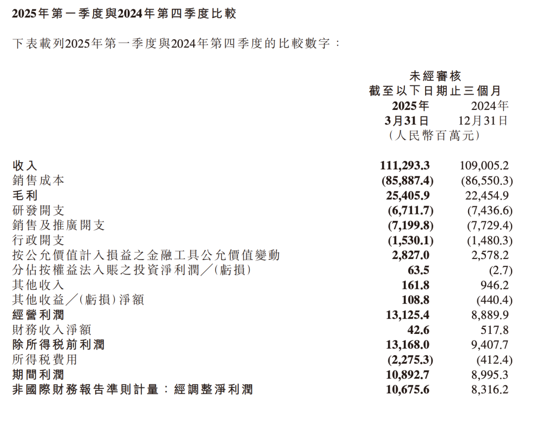 2025年Q1,小米经调整净利破百亿达107亿,同比增64.5%,超过了大部分券商与机构的预期。它标志着小米首次跨越"单季百亿净利润俱乐部"门槛。